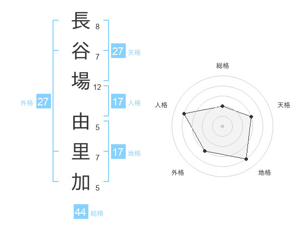 長谷場 由里加さんを姓名の画数から五運を鑑定