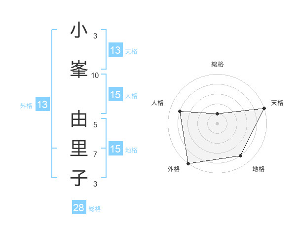 小峯 由里子さんを姓名の画数から五運を鑑定