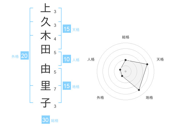 上久木田 由里子さんを姓名の画数から五運を鑑定