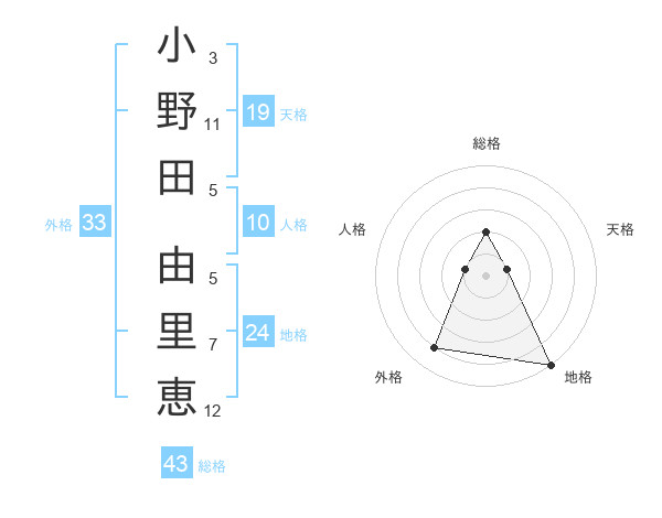 小野田 由里恵さんの天格は19画の1点!