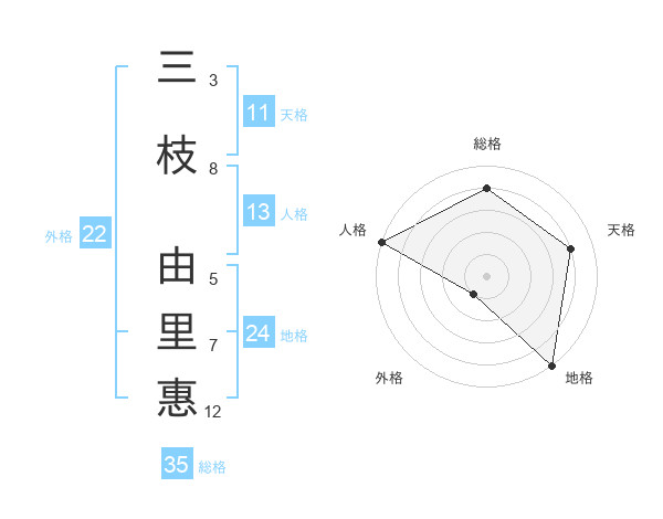 三枝 由里惠さんを姓名の画数から五運を鑑定