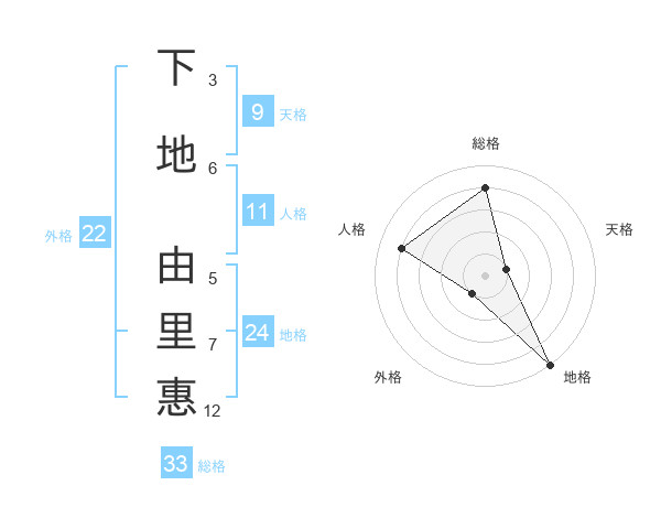 下地 由里惠さんを姓名の画数から五運を鑑定