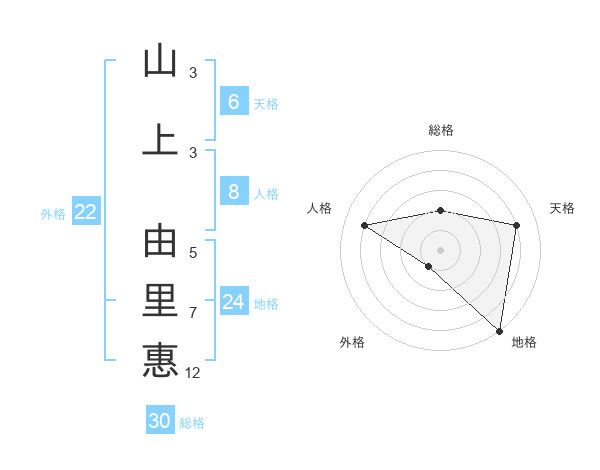 山上 由里惠さんを姓名の画数から五運を鑑定