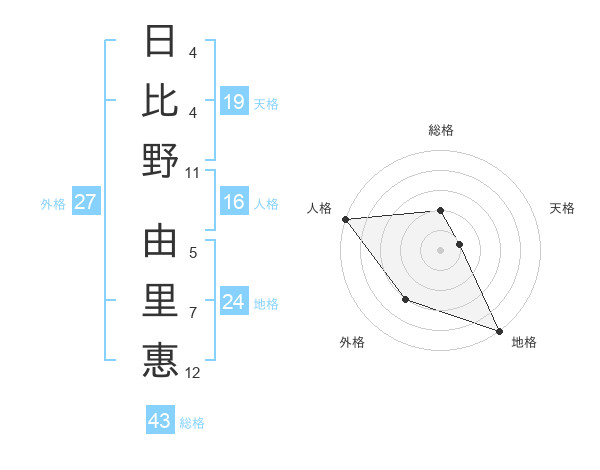 日比野 由里惠さんの外格は27画の3点!