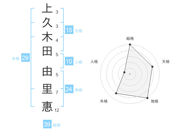 上久木田 由里惠さんを姓名の画数から五運を鑑定