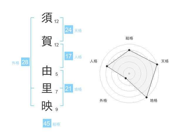 須賀 由里映さんを姓名の画数から五運を鑑定