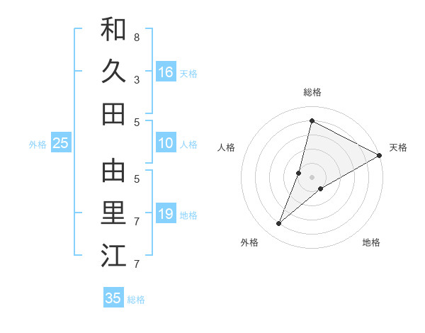 和久田 由里江さんを姓名の画数から五運を鑑定