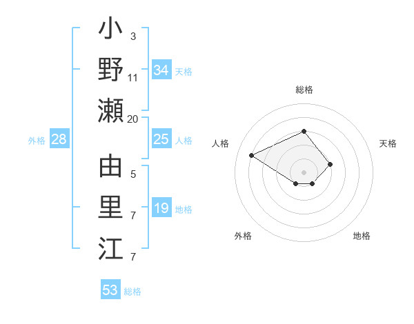 小野瀬 由里江さんを姓名の画数から五運を鑑定