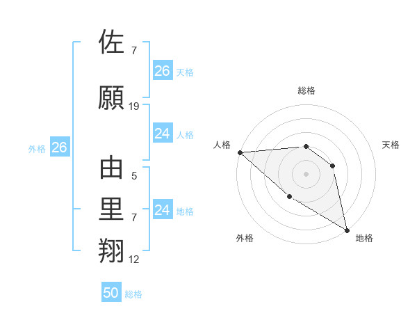佐願 由里翔さんの総格は50画の2点!