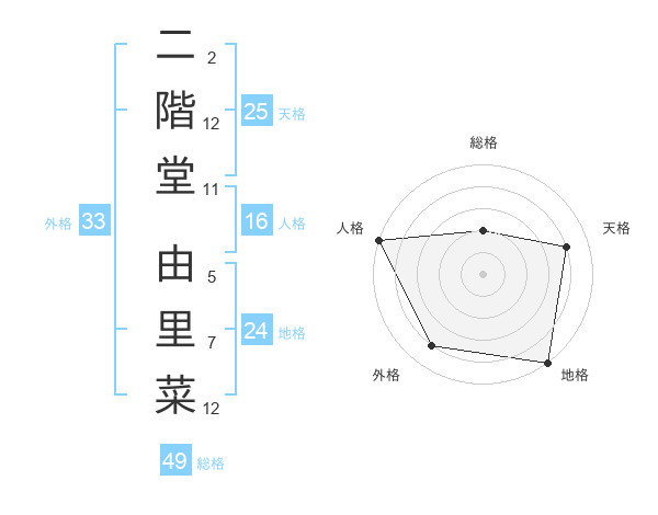 二階堂 由里菜さんを姓名の画数から五運を鑑定