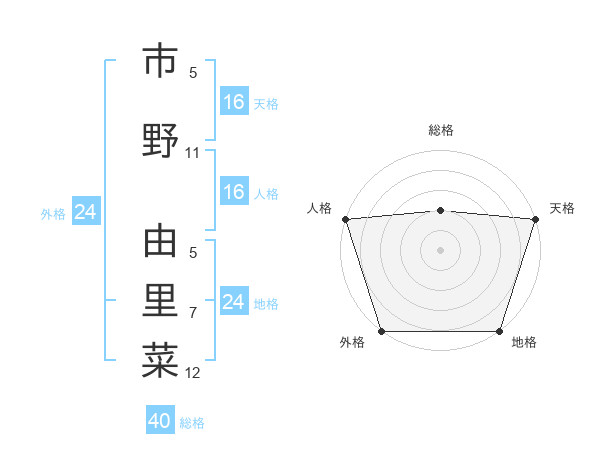 市野 由里菜さんを姓名の画数から五運を鑑定