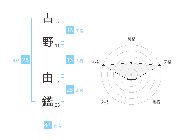 古野 由鑑さんを姓名の画数から五運を鑑定