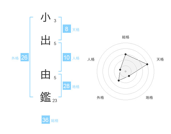 小出 由鑑さんを姓名の画数から五運を鑑定