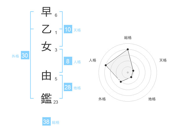 早乙女 由鑑さんを姓名の画数から五運を鑑定