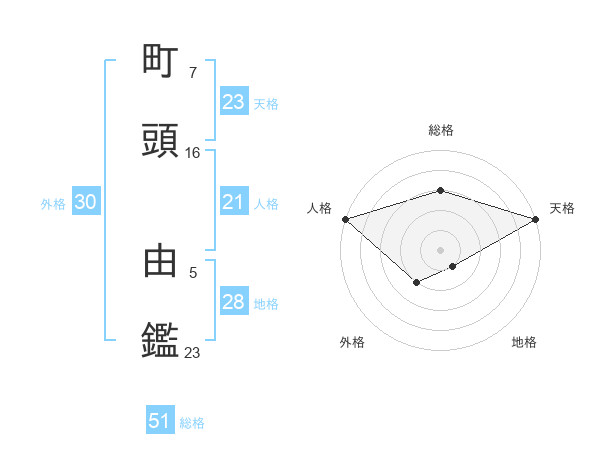 町頭 由鑑さんを姓名の画数から五運を鑑定