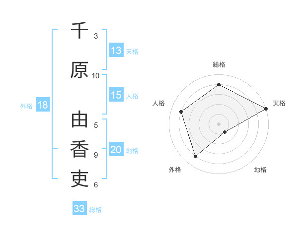千原 由香吏さんを姓名の画数から五運を鑑定