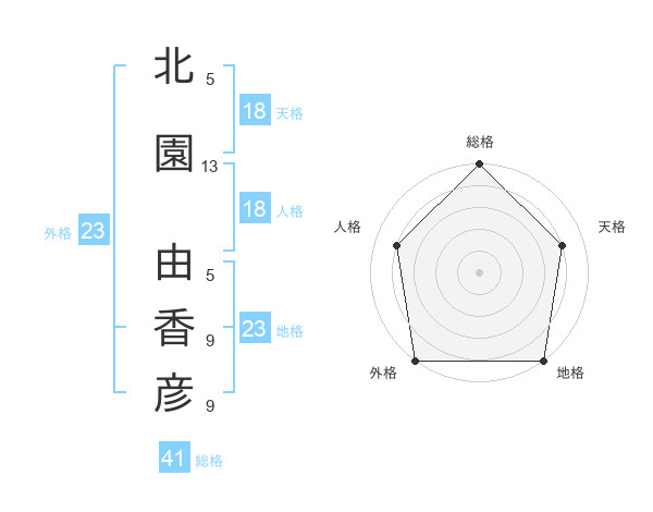 北園 由香彦さんを姓名の画数から五運を鑑定