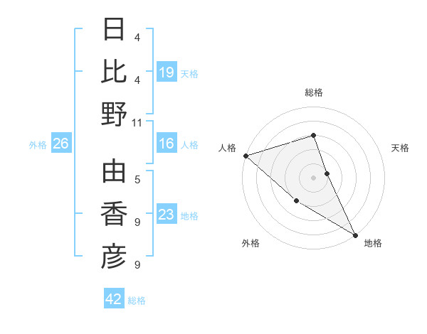 日比野 由香彦さんを姓名の画数から五運を鑑定