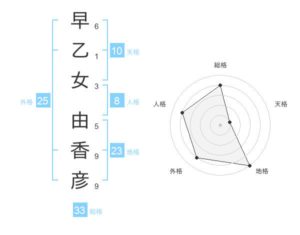 早乙女 由香彦さんを姓名の画数から五運を鑑定