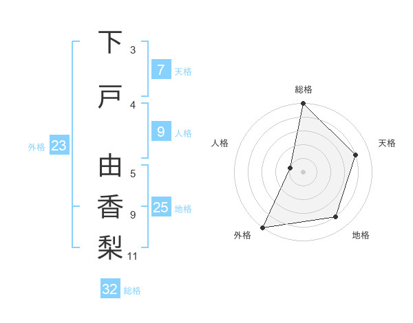 下戸 由香梨さんを姓名の画数から五運を鑑定