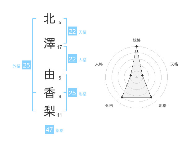 北澤 由香梨さんを姓名の画数から五運を鑑定