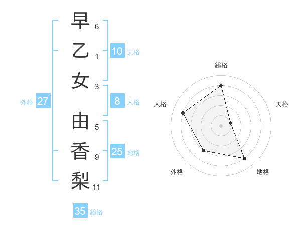 早乙女 由香梨さんを姓名の画数から五運を鑑定