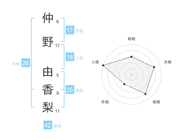 仲野 由香梨さんの総格は42画の3点!