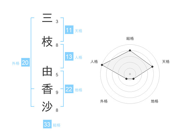 三枝 由香沙さんを姓名の画数から五運を鑑定