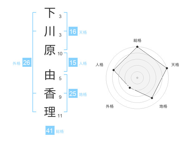 下川原 由香理さんの総格は41画の5点!