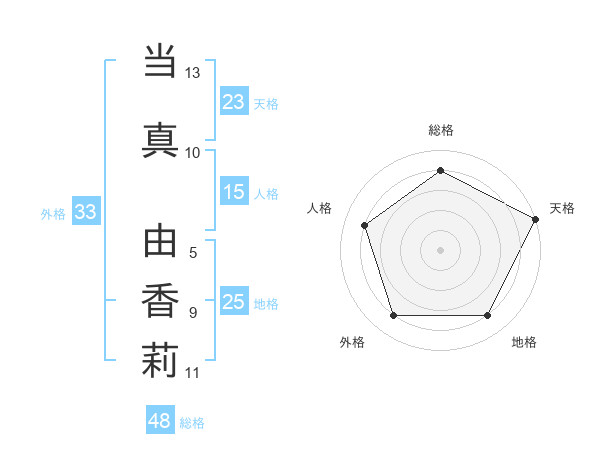 当真 由香莉さんを姓名の画数から五運を鑑定
