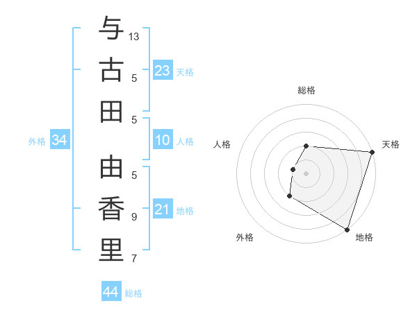 与古田 由香里さんを姓名の画数から五運を鑑定