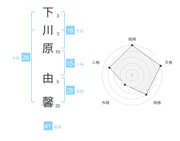 下川原 由馨さんを姓名の画数から五運を鑑定