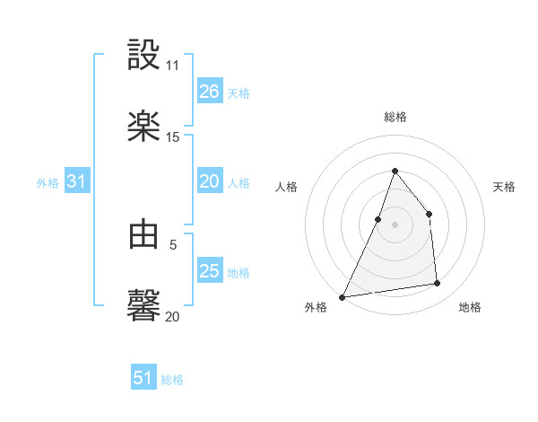 設楽 由馨さんを姓名の画数から五運を鑑定