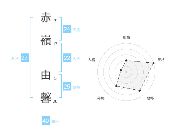赤嶺 由馨さんを姓名の画数から五運を鑑定
