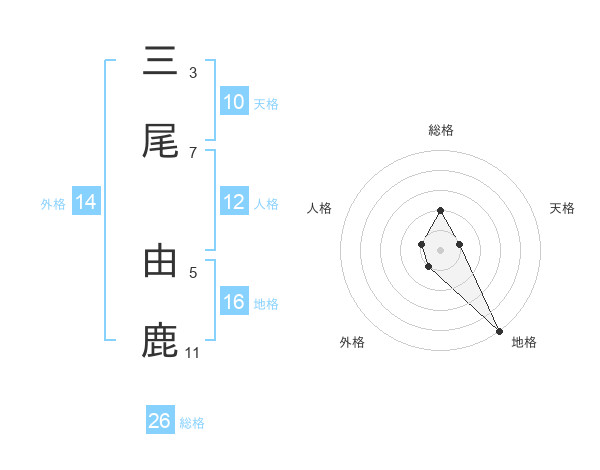 三尾 由鹿さんの総格は26画の2点!