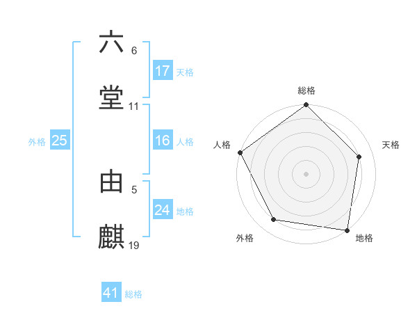 六堂 由麒さんの外格は25画の4点!