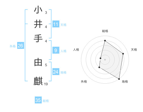 小井手 由麒さんを姓名の画数から五運を鑑定
