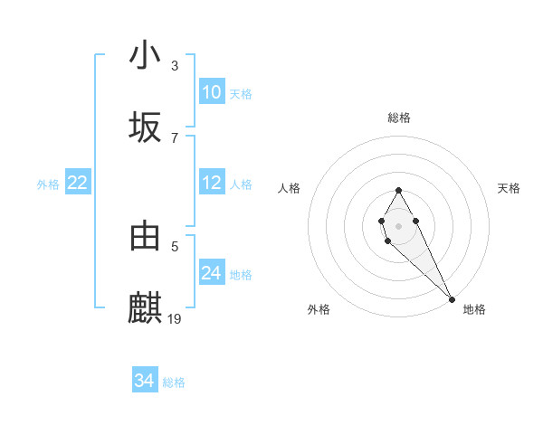 小坂 由麒さんを姓名の画数から五運を鑑定