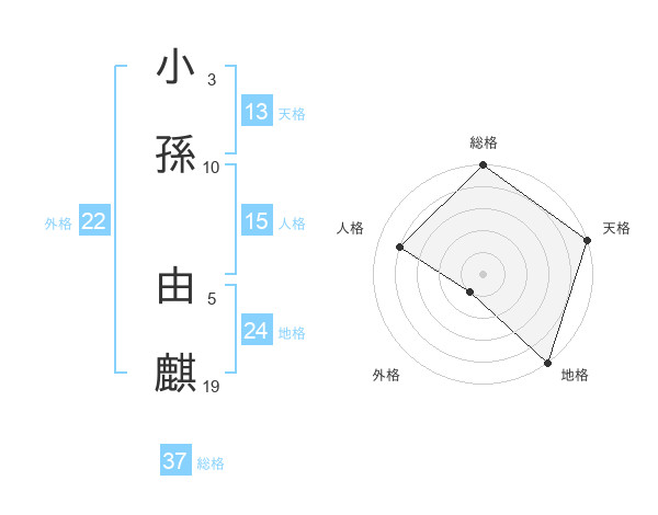 小孫 由麒さんの外格は22画の1点!
