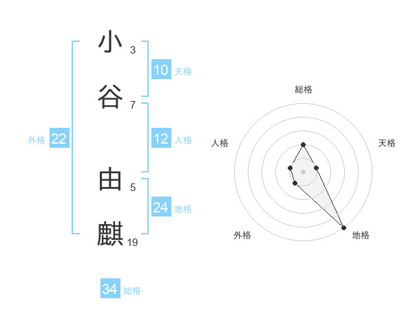小谷 由麒さんを姓名の画数から五運を鑑定
