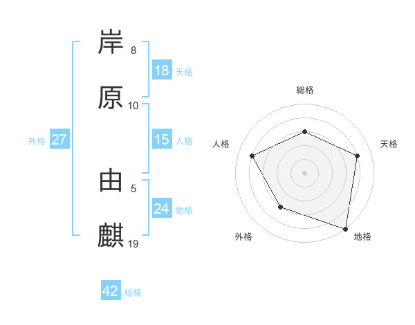岸原 由麒さんを姓名の画数から五運を鑑定