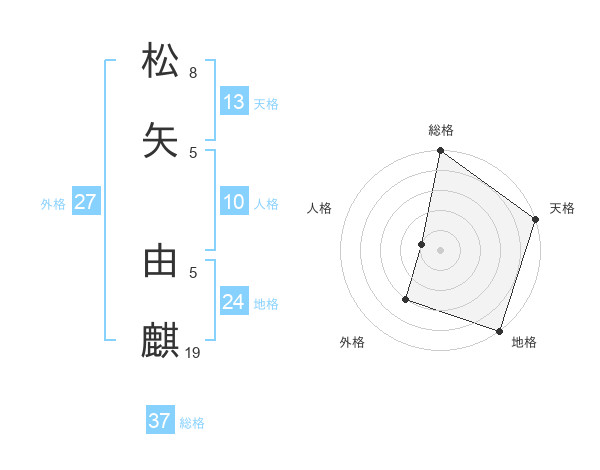 松矢 由麒さんの総格は37画の5点!