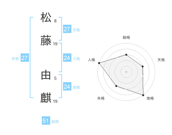 松藤 由麒さんの総格は51画の3点!