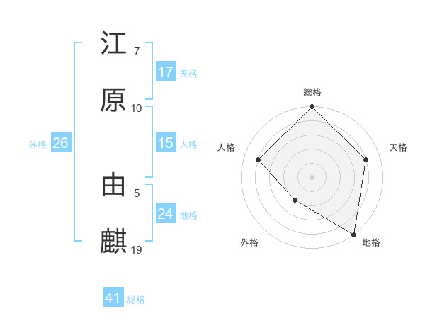 江原 由麒さんの天格は17画の4点!