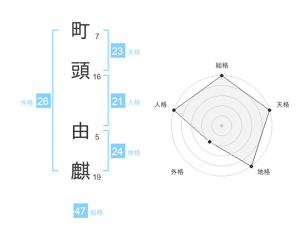 町頭 由麒さんを姓名の画数から五運を鑑定