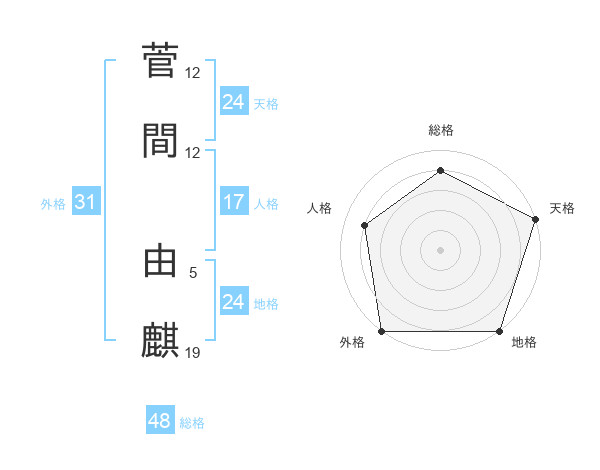 菅間 由麒さんの天格は24画の5点!