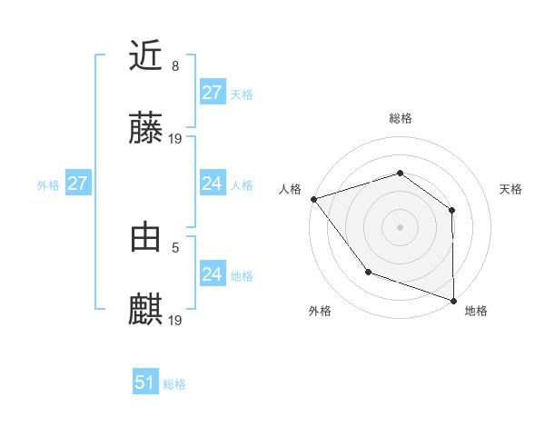 近藤 由麒さんを姓名の画数から五運を鑑定