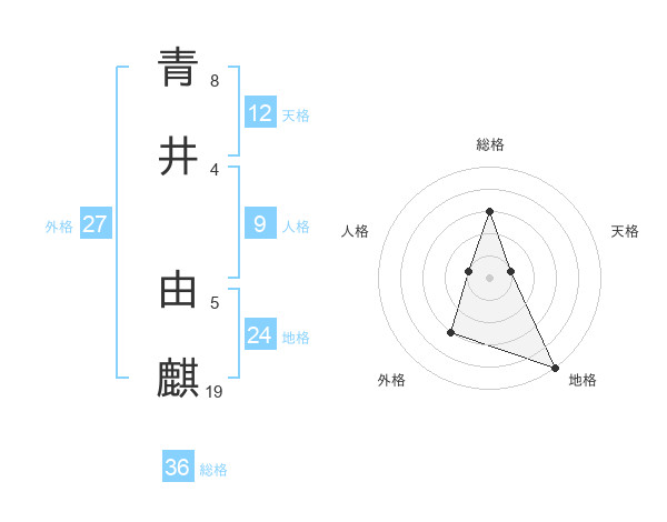青井 由麒さんの天格は12画の1点!