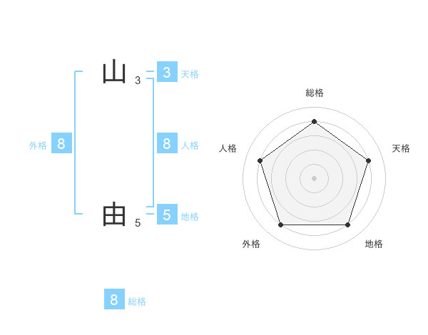 山 由さんの総格は8画の4点!