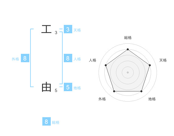 工 由さんの総格は8画の4点!